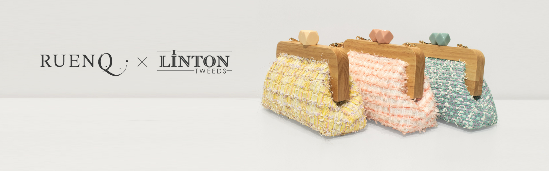 [RUENQ X LINTON]ツイード 木製がま口バッグ イエロー