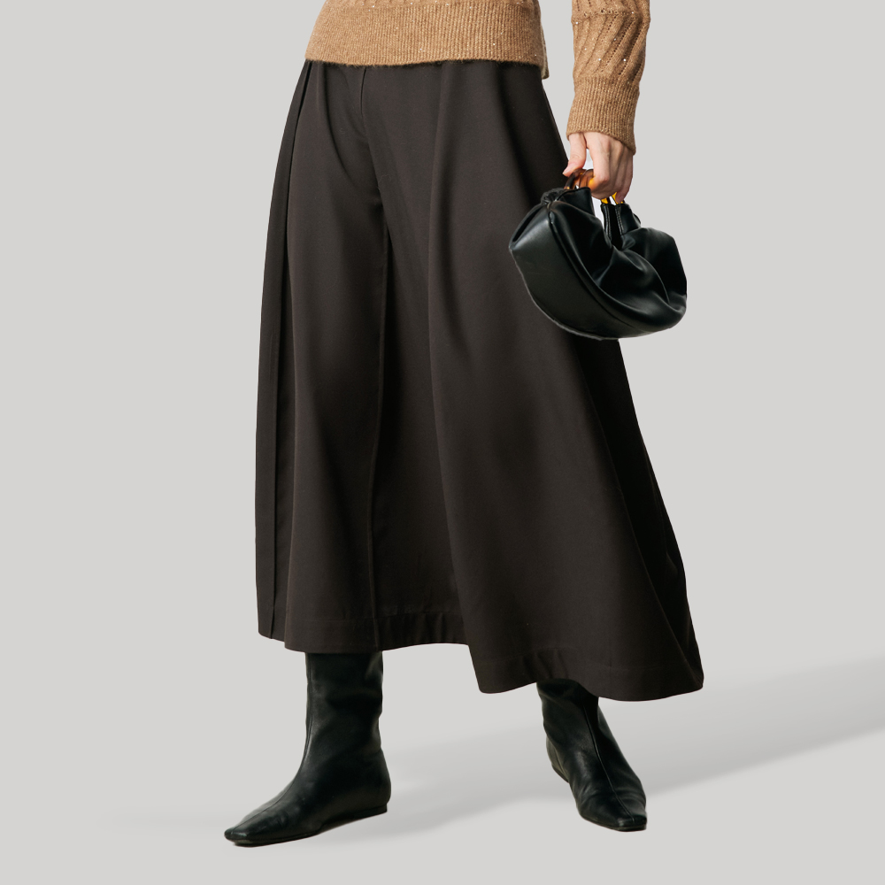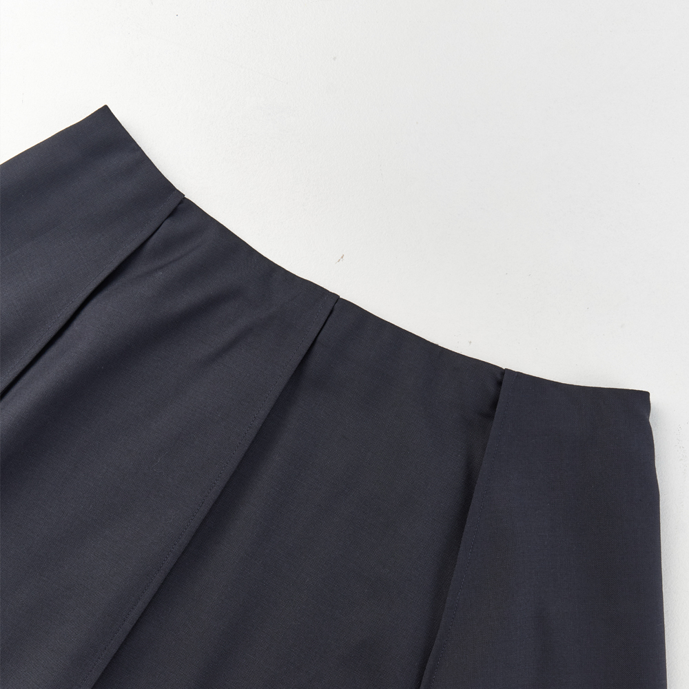 【概要】このスカートは繊細なメリノウールの質感が特徴で、座りがちなオフィスワークに適しており、洗練さと実用性を醸し出す、価値の高い選択肢です。 シンプルで立体的なチューリップ型のデザインと6パネル構造が、洗練されたエレガントな外観を作り出します。 プリーツ入りのストレートレッグのクロップドスタイルは、快適で自由な着用を提供します。