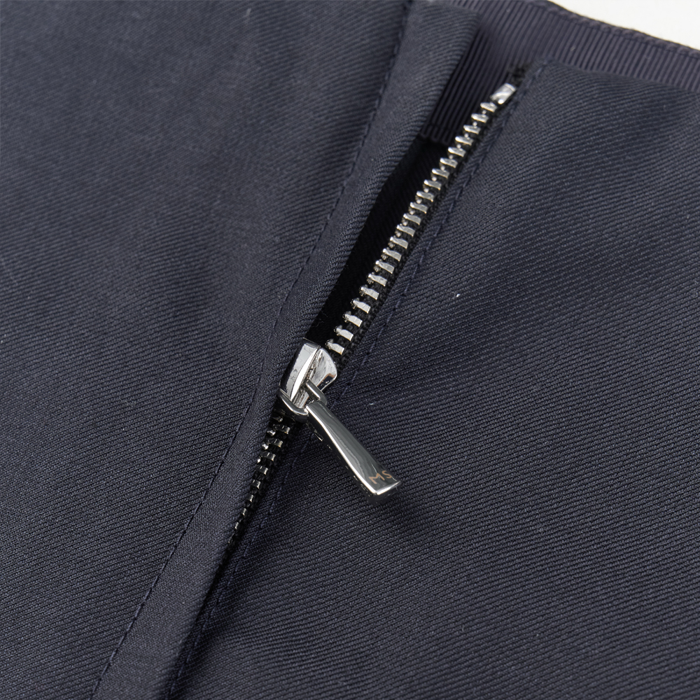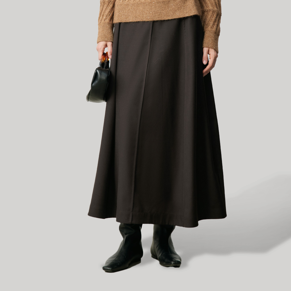 【スカートデザインの詳細】 1. 6パネル構造と立体的な縫い目で、シンプルでありながらスタイリッシュなチューリップ型を作り出します。 2. ふくらはぎ丈で、アンクルブーツやフラットシューズとエレガントにマッチし、洗練された雰囲気を醸し出します。 3. 裏地なしのデザイン。細かく織られた生地は、優れたドレープ性と軽く流れるような感触を提供します。 4.ウエスト部分の二重のマッチングウェビングと背面のメタルジッパーが絶妙なディテールを加えています。