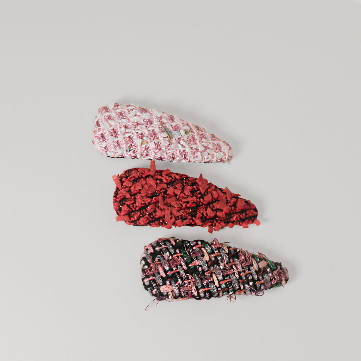 ツイードのエレガントな遺伝子が、現代のヘアアートに溶け込む。横に挿しても、アップスタイルに飾っても、普通のヘアスタイルが一気に上品に。写真映え間違いなしです。