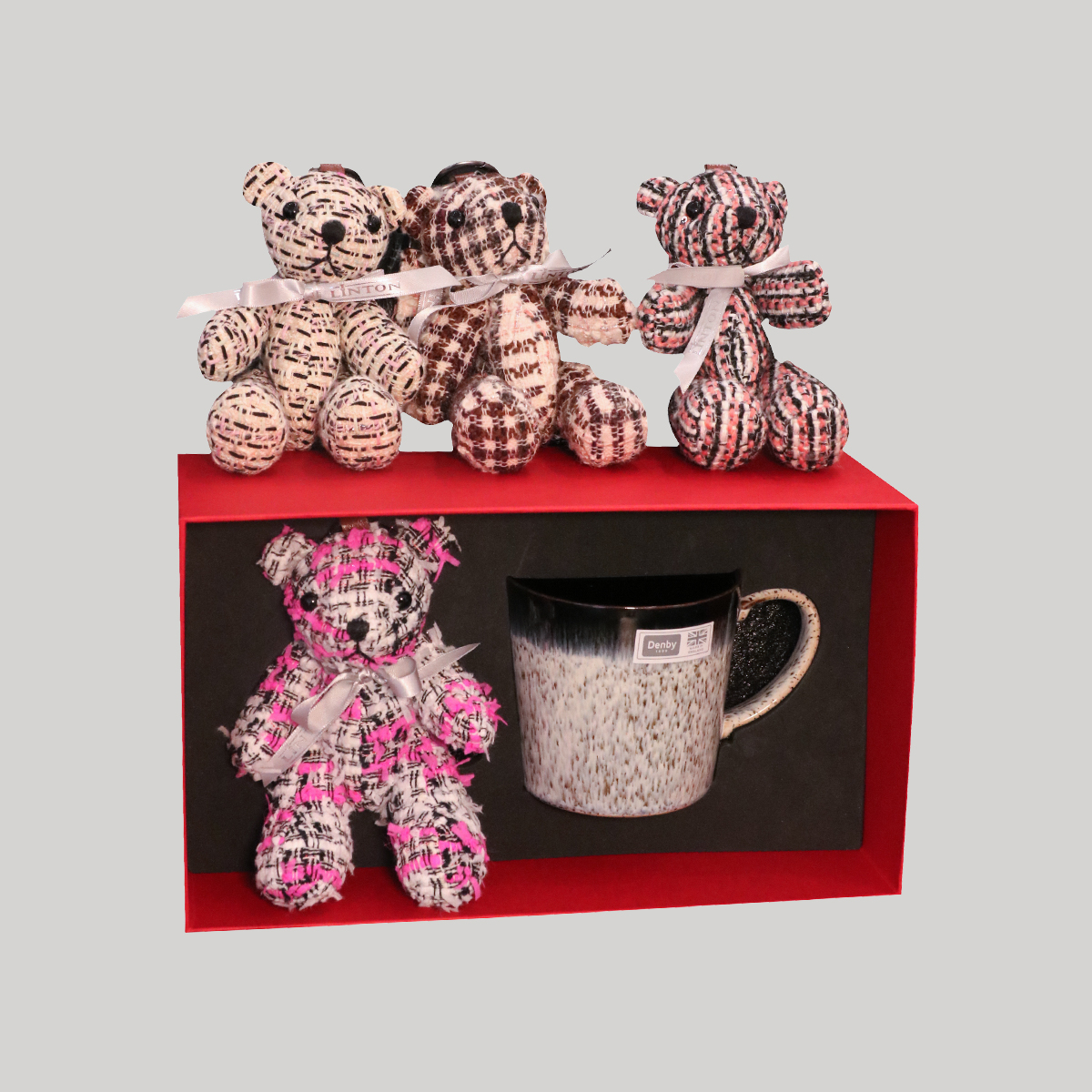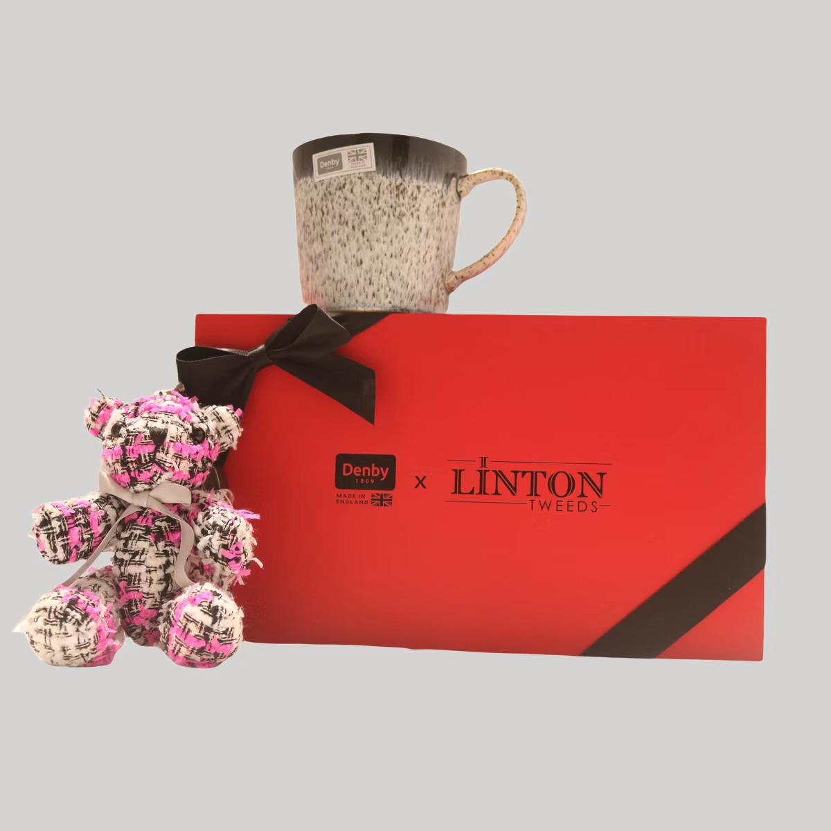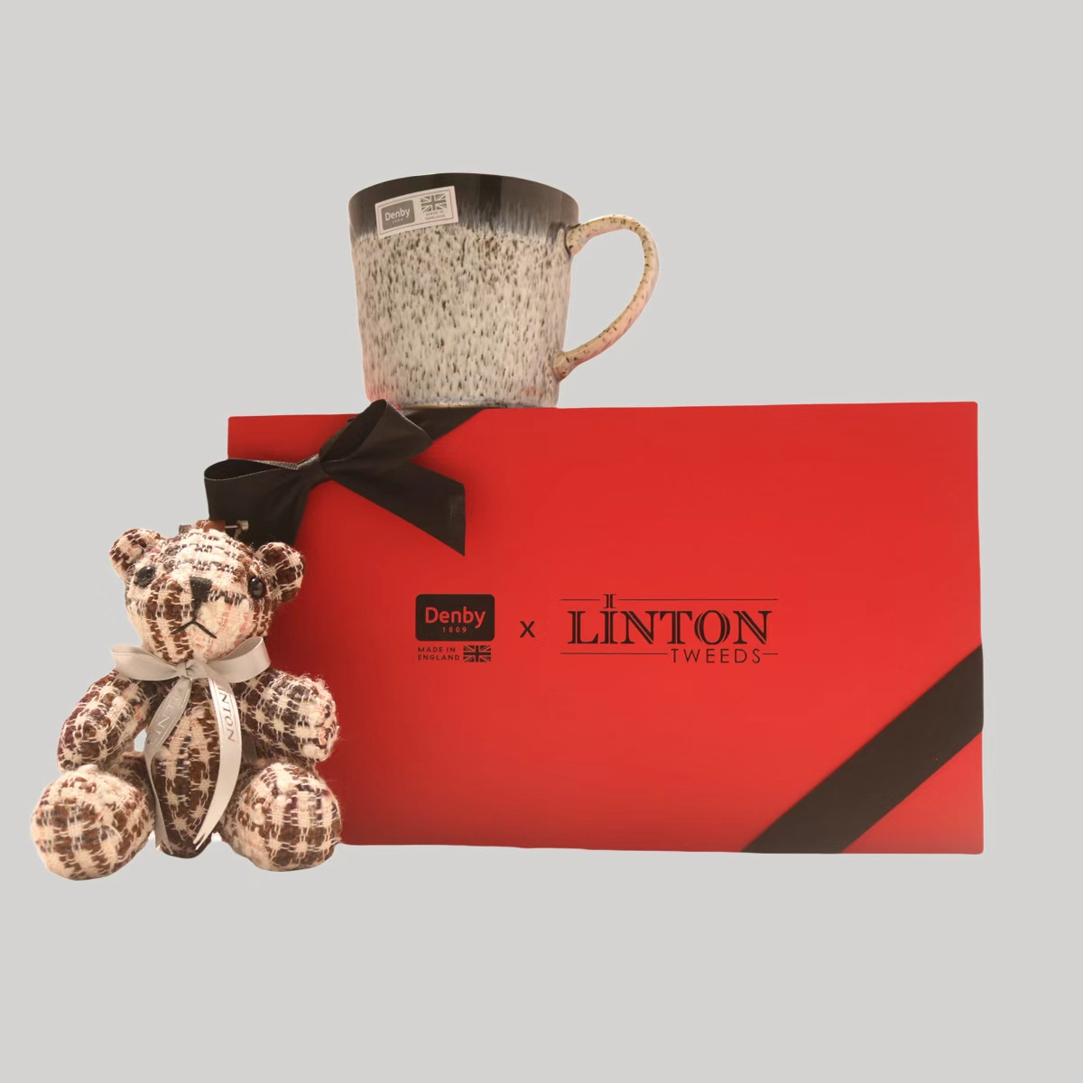 リントンベア(LINTON Bear)は、英国カーライルの小さな町にあるツイード工房で、百年の歴史を持つリントンツイード(LINTON TWEEDS)と同じように誕生しました。リントンツイードは英国の老舗ツイードブランドで、多様なデザイン、豊かな色彩、華やかな生地効果で世界的に知られています。2025年、リントンベアは世界旅行を始め、最初の目的地は鉄分豊富な粘土が採れる英国ダービーシャーでした。ここには同じく長い歴史を持つ百年陶器ブランド、デンビー(DENBY)があります。英国を代表するこの二つの老舗ブランドは、伝統工芸へのこだわりと、アートとファッションへの飽くなき追求を続け、世界中にファッショナブルで質の高い製品を提供してきました。新春を迎えるにあたり、二つのブランドが協力して、愛にあふれたセットギフトボックスをお届けします。デンビーの「黒露」シリーズは、白と黒のクラシックなコントラストがレトロでエレガントな雰囲気を醸し出し、雲や山、雨を思わせるデザインです。職人の技が光る二重釉薬仕上げにより、マグカップはより重厚で気品のある仕上がりとなっています。