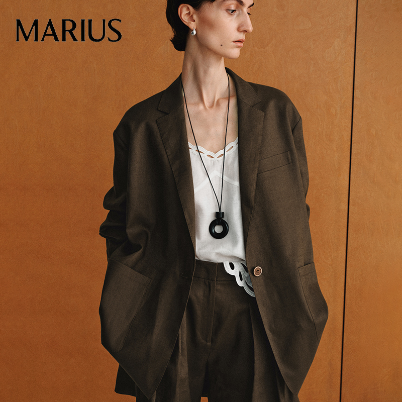 1. シングルブレスト、ドロップショルダーシルエットのスーツ(マックス・マーラのクラシックデザインをアップグレードしたバージョン)