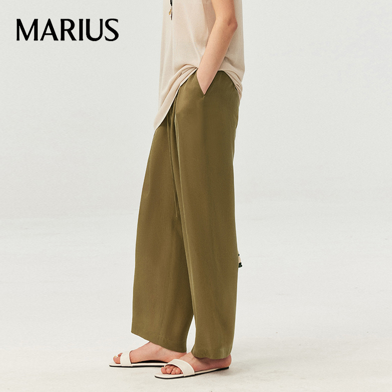 2. 幅広のドローストリングウエストバンドは、お腹周りをカバーする滑らかなフロントと、ゆとりを持たせる伸縮性のあるバック、そして調節しやすいドローストリング付きです。