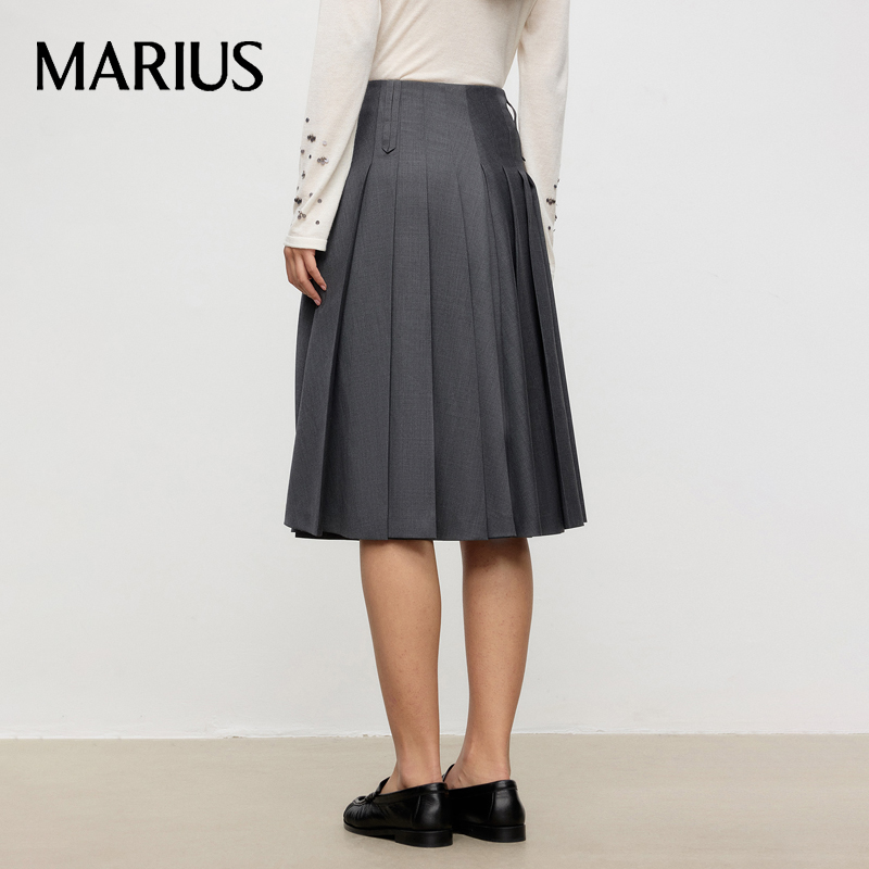 4. スカートには繊細なプリーツ加工が施されており、両サイドに均一で左右対称のプリーツが入っています。生地の織り目に沿ってプリーツを調整することで、プリーツがよれるのを防ぎ、職人技の証となっています。