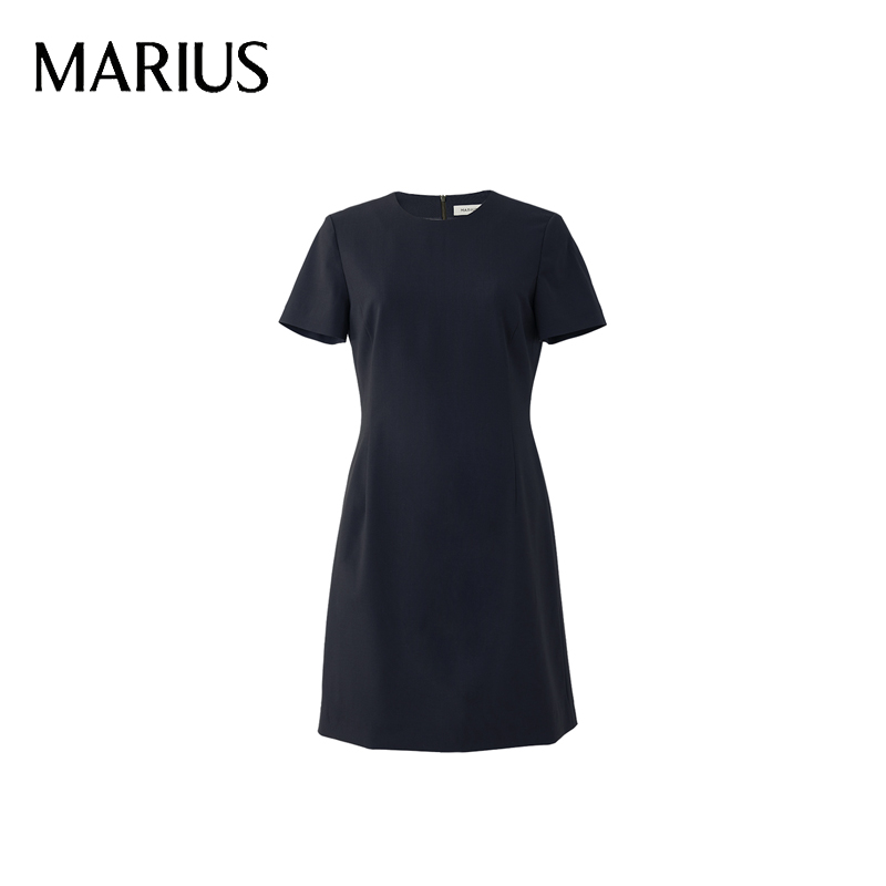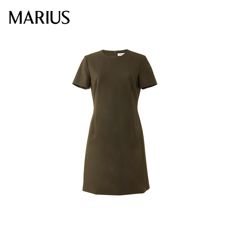 1. シンプルで体にフィットする、ウエストを絞ったシルエットの半袖ワンピース。すっきりとした流線型のカッティングが特徴です。